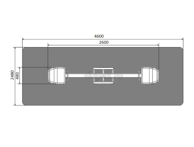 L x I = 2600 x 480 mm, H = 950 mm. |