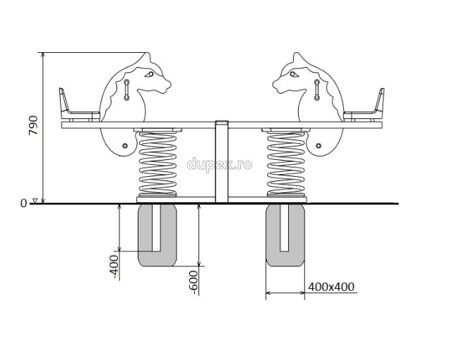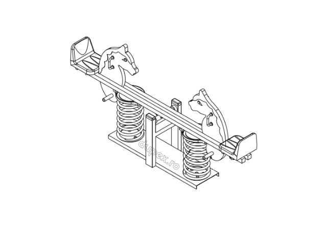 Produsul Balansoar cu Arc – Caluti este confectionat din PAFS (poliesteri armati cu fibra de sticla) viu colorat. Montat pe cadru metalic cu arcuri, este grunduit si vopsit cu vopsele pe apa.