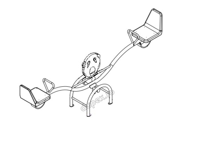 Cadru suport metalic, bara transversala, suporti lagare cu rulmenti, scaune cu spatar din fibra de sticla. O figurina centrala din fibra de sticla este amplasata pe bara transversala. In fata fiecarui scaun este prevazut un maner de prindere metalic.