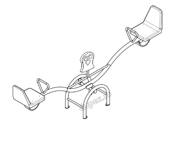 Cadru suport metalic, bara transversala, suporti lagare cu rulmenti, scaune cu spatar din fibra de sticla. O figurina centrala din fibra de sticla este amplasata pe bara transversala. In fata fiecarui scaun este prevazut un maner de prindere metalic.