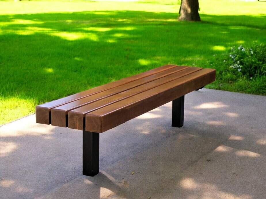 Produsul Banca Parc fara Spatar din lemn masiv este confectionat din lemn si metal. Grunduit si lacuit, este rezistent la intemperii.