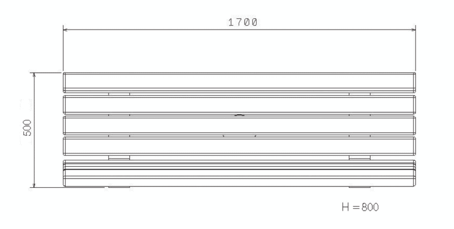 L x I = 1700 x 500 mm, H = 800 mm.