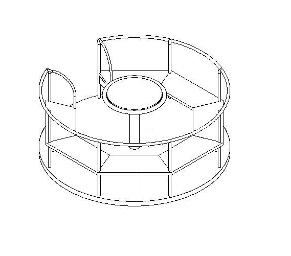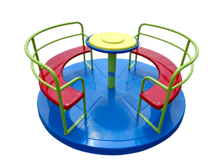 Produsul Carusel cu platforma CP.01 este confectionat din metal. Grunduit si viu colorat cu vopsele pe apa, este rezistent la intemperii.