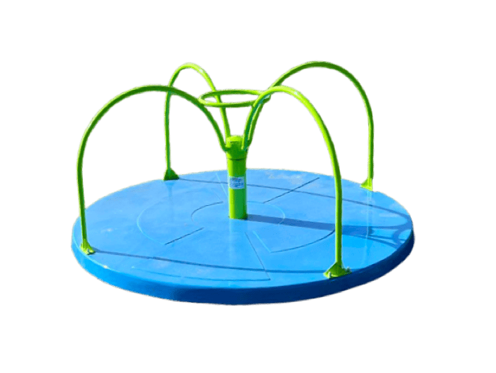 Produsul Carusel cu platforma pentru copii cu dizabilitati CP.02 este confectionat din metal. Grunduit si viu colorat cu vopsele pe apa, este rezistent la intemperii.