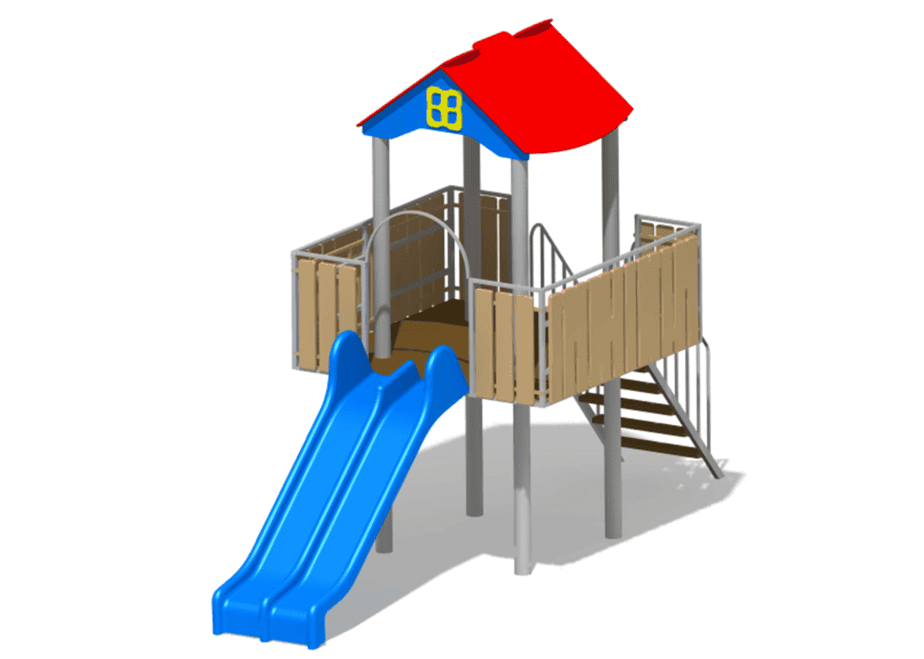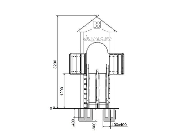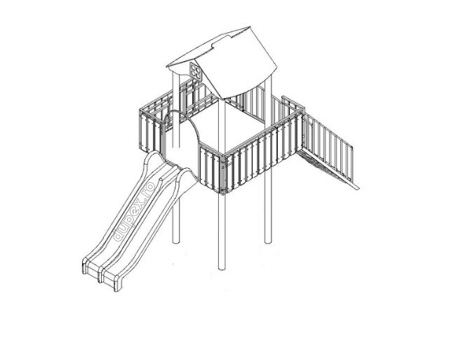 1 tobogan dublu din fibra de sticla, 1 turn cu terasa, scara. |
