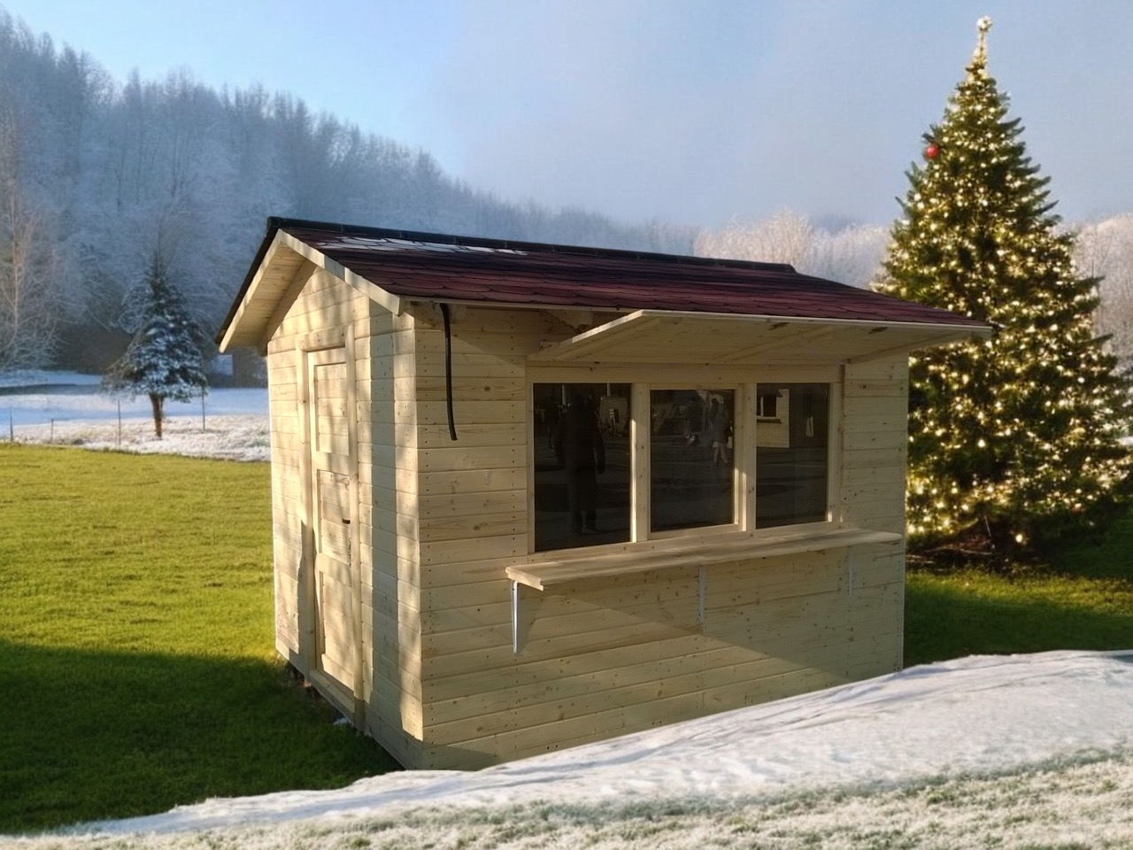 Produsul Casuta tip chiosc este confectionat din lemn. Lacuit, este rezistent la intemperii.