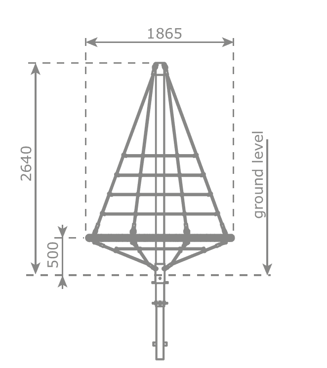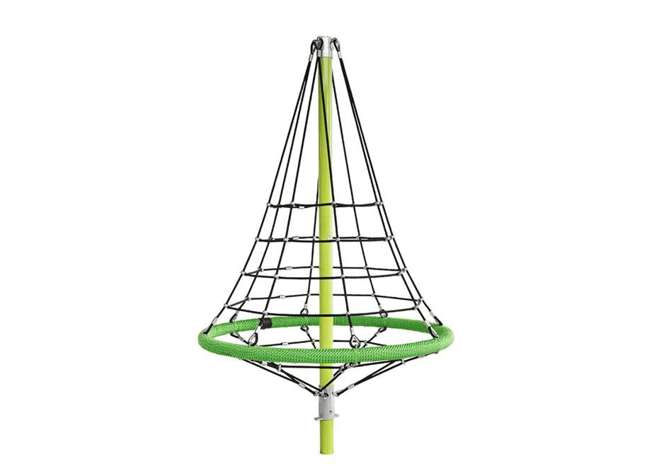 Produsul Cataratoare Piramida CR.10 este format dintr-o bara verticala pe care este intinsa o plasa de otel cu chingi de prindere. La sol este un cuib.