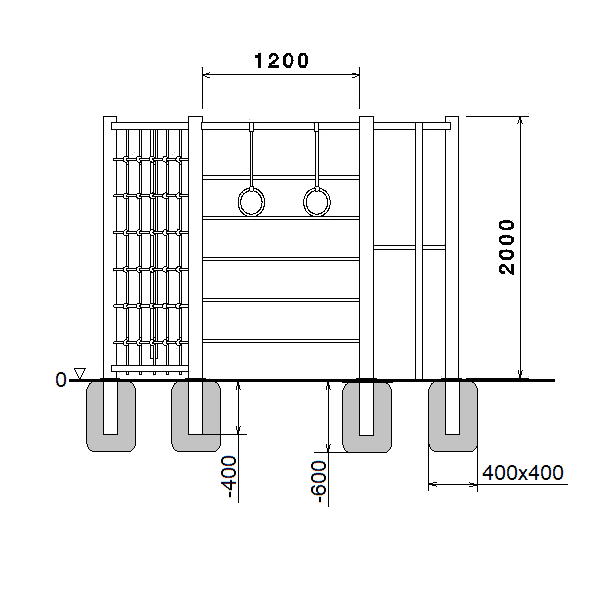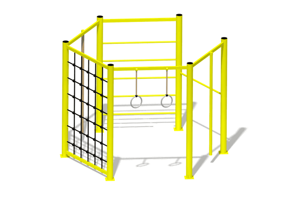 Plasa catarare din franghie armata, 2 bare pompieri, bara tractiuni, sistem catarare, inele tractiuni. |