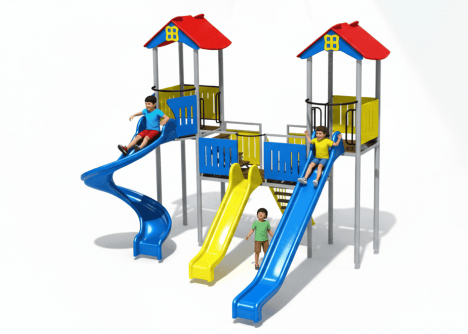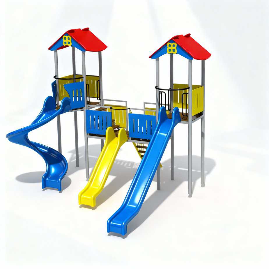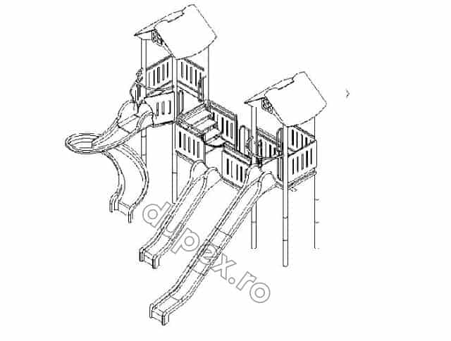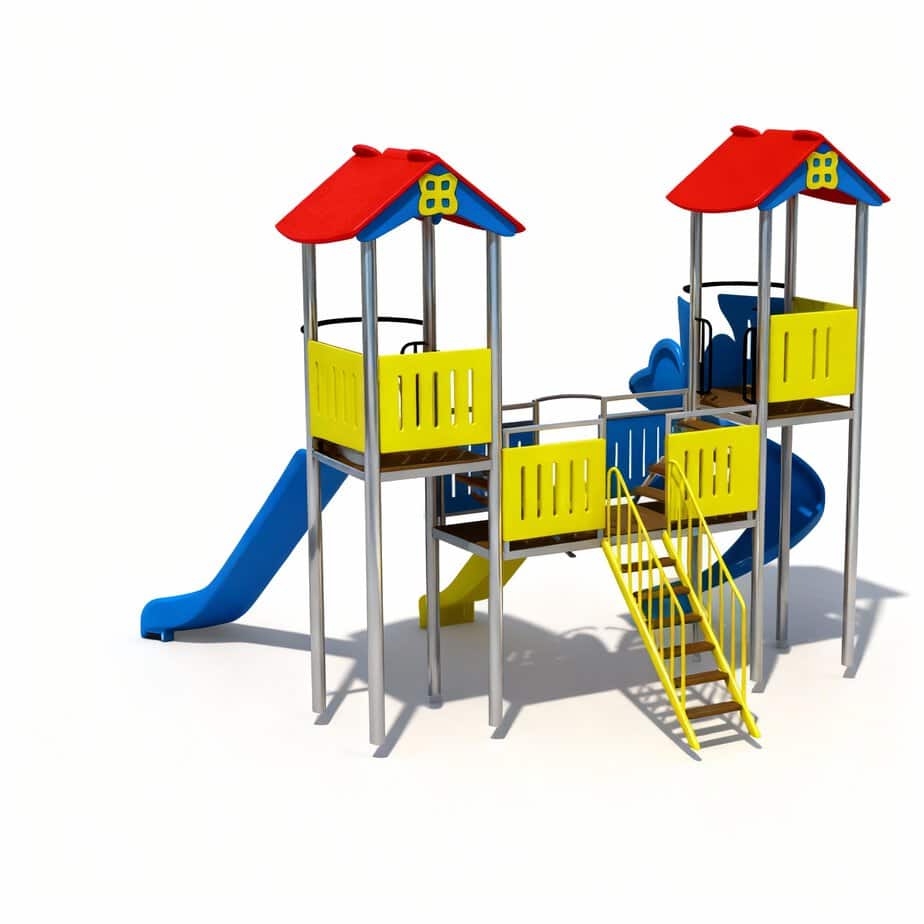 Produsul Complex de Joaca CJ.02N este confectionat din structura metalica tratata anticoroziv vopsita in camp electrostatic.