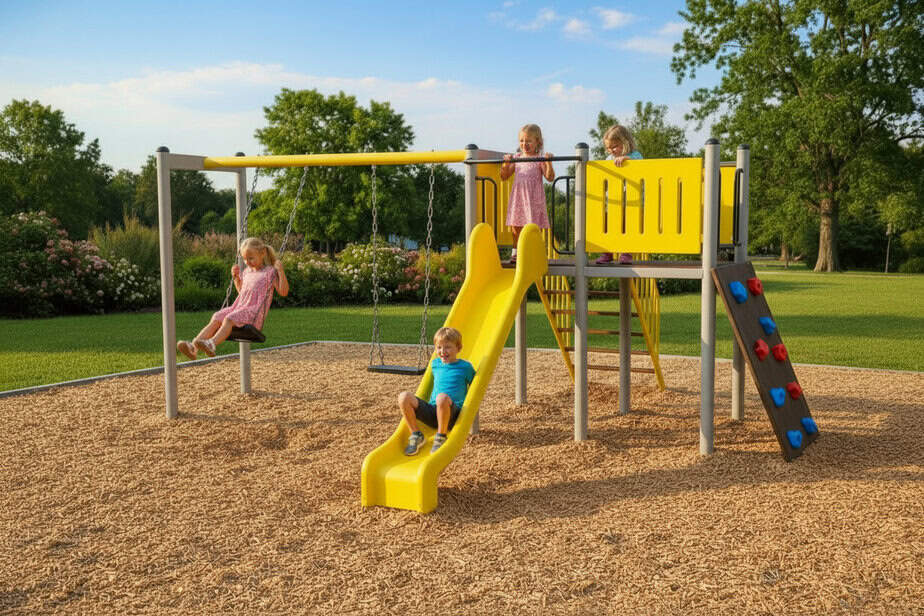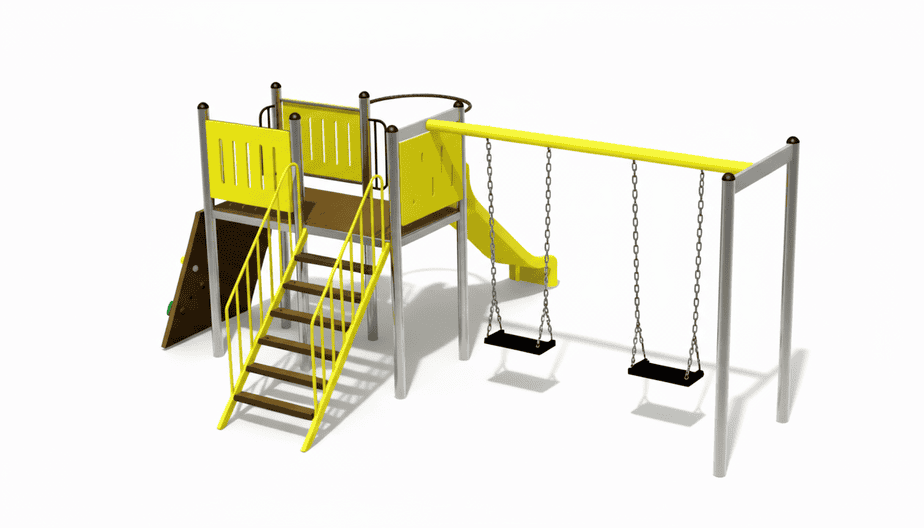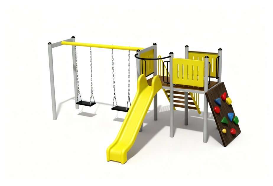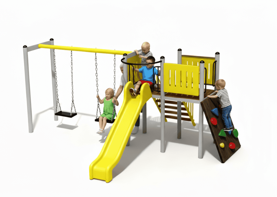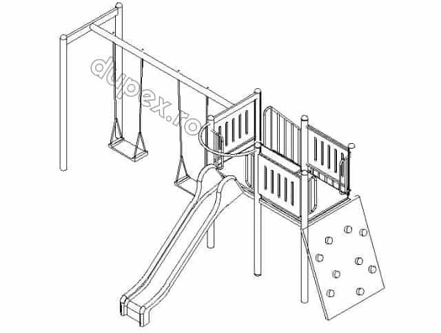 Produsul Complex de Joaca CJ.05N este confectionat din structura metalica tratata anticoroziv vopsita in camp electrostatic.
