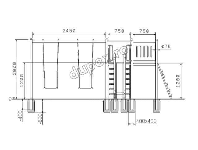 Strat cauciuc cu grosime 20-50 mm sau pietris cu granulatia 2-8 mm cu grosimea de 200 mm (se achizitioneaza separat). |