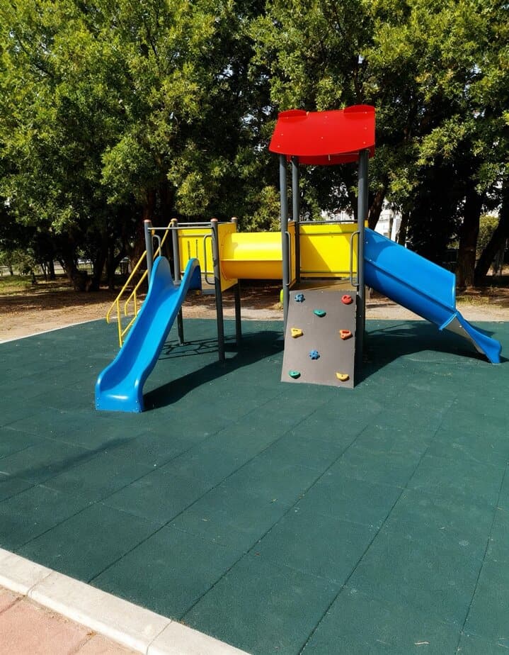 Strat cauciuc cu grosime 20-50 mm sau pietris cu granulatia 2-8 mm cu grosimea de 200 mm (se achizitioneaza separat). |