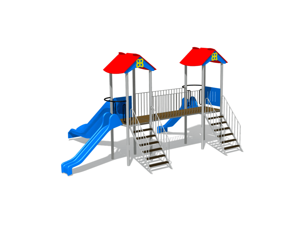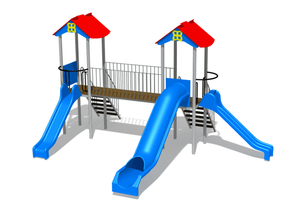 Produsul Complex de Joaca CJ.09N este confectionat din structura metalica tratata anticoroziv vopsita in camp electrostatic.