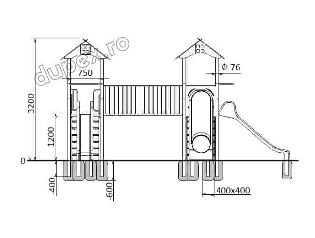 Strat cauciuc cu grosime 20-50 mm sau pietris cu granulatia 2-8 mm cu grosimea de 200 mm (se achizitioneaza separat). |