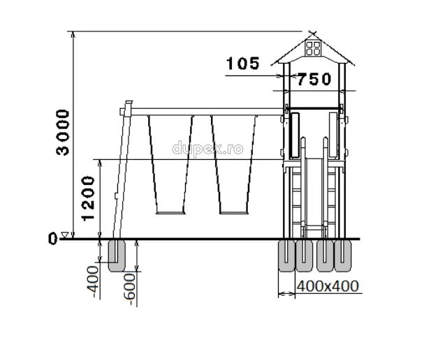 2 leagane, 1 tobogan din fibra de sticla (PAFS). |
