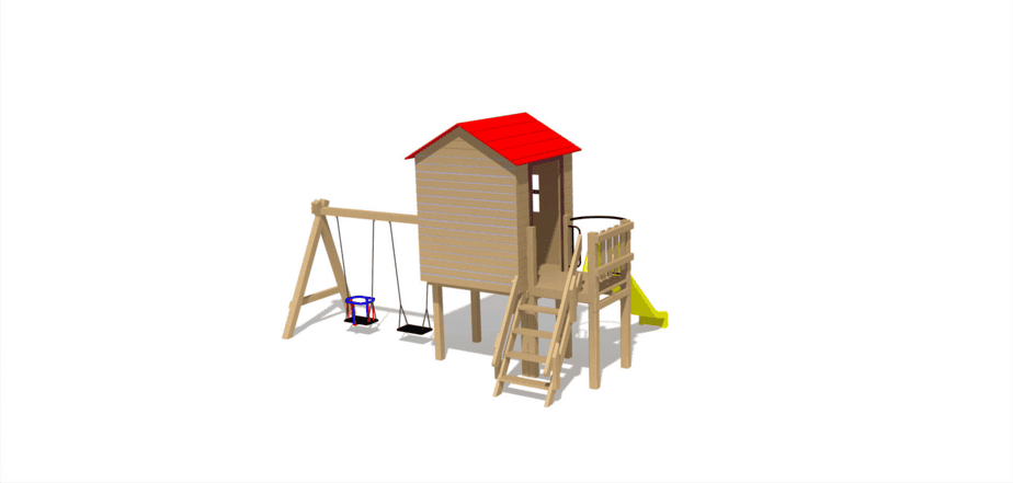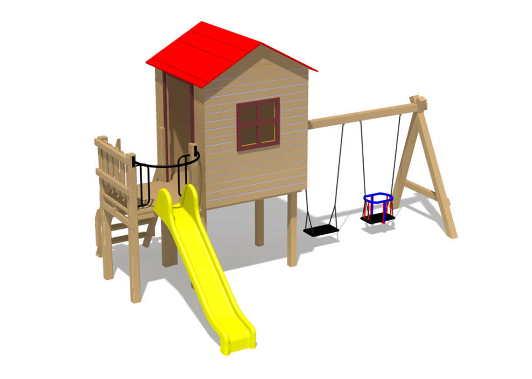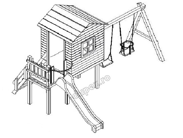 Produsul Complex de Joaca CJ.14.02N este confectionat din structura de lemn. Acoperit cu bait si lac pe baza de apa, este rezistent la intemperii.
