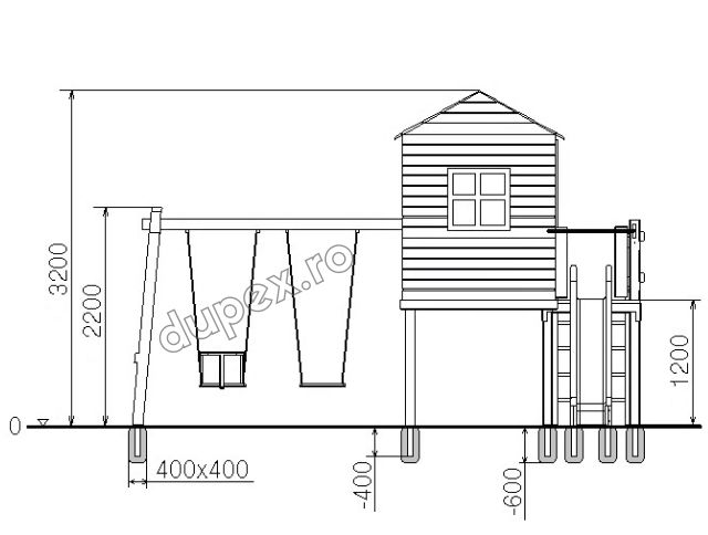 4 leagane, 1 tobogan din fibra de sticla (PAFS), un turn. |