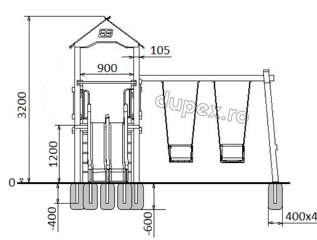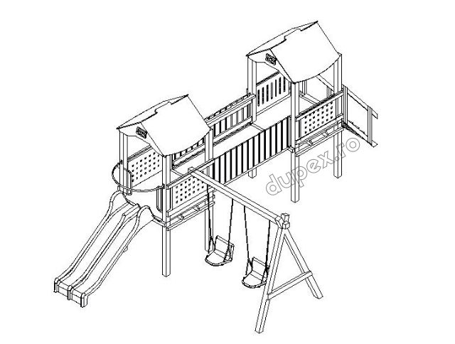 2 leagane, 1 tobogan dublu din fibra de sticla (PAFS), 2 turnuri. |