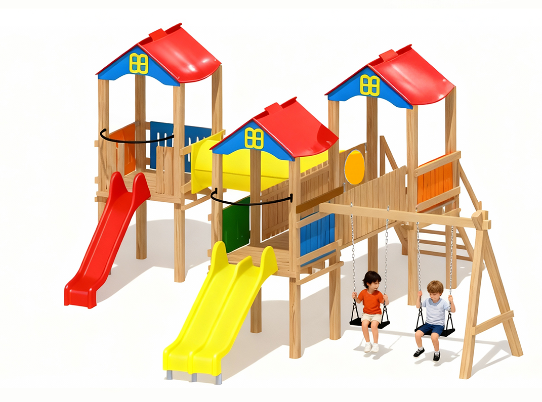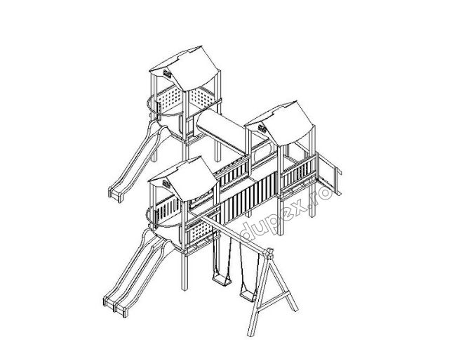 Produsul Complex de Joaca CJ.16 este confectionat din structura de lemn. Acoperit cu bait si lac pe baza de apa, este rezistent la intemperii.