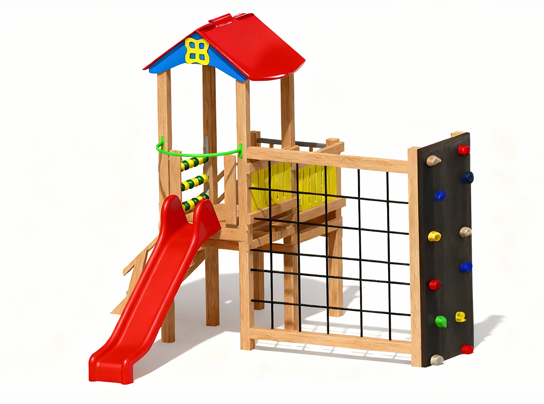 Produsul Complex de Joaca CJ.17N este confectionat din lemn.