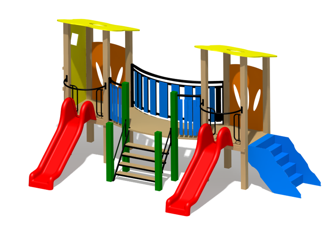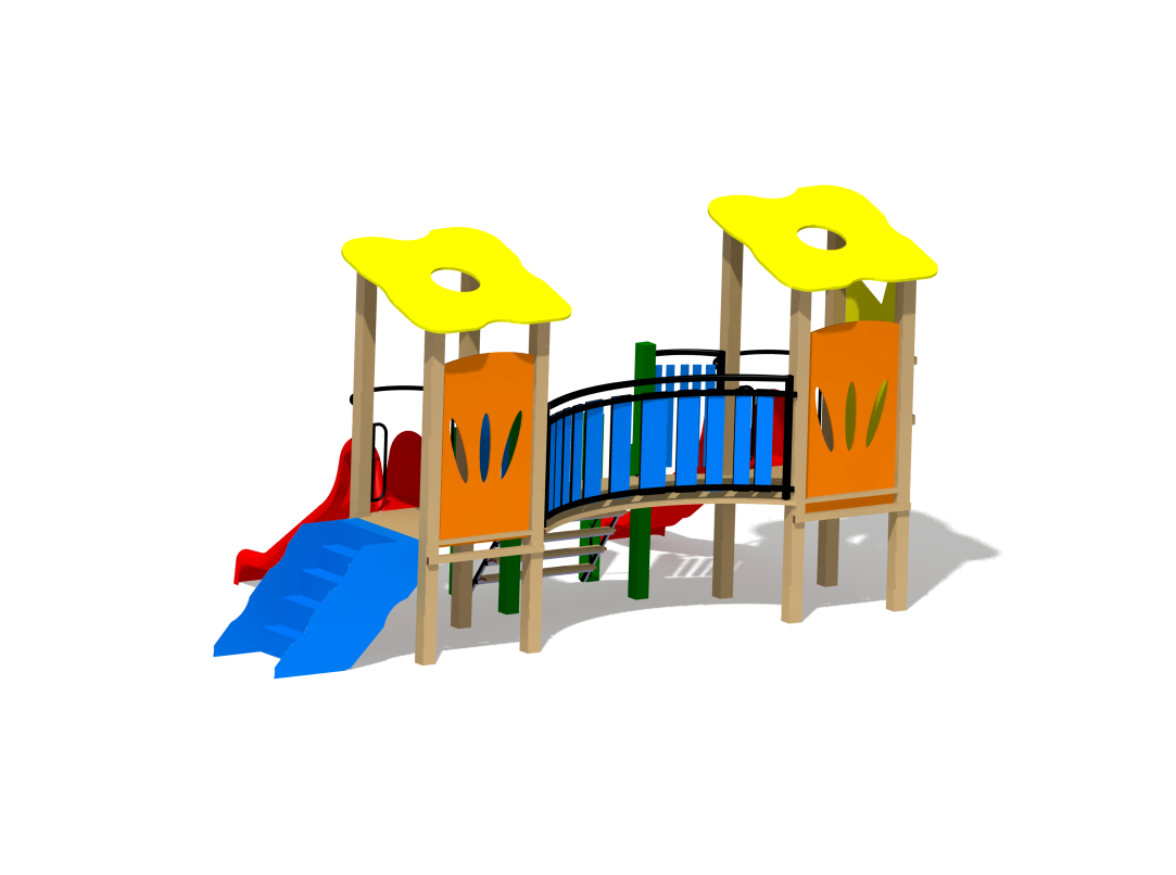 Produsul Complex de Joaca CJ.20.01N este confectionat din structura de lemn. Acoperit cu bait si lac pe baza de apa, este rezistent la intemperii.