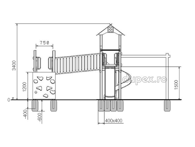 2 tobogane din fibra de sticla (PAFS), 1 sistem catarare, 1 turn, 1 platforma. |