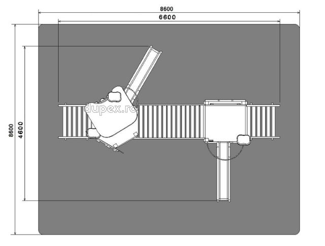 Strat cauciuc cu grosime 20-50 mm sau pietris cu granulatia 2-8 mm cu grosimea de 200 mm (se achizitioneaza separat).