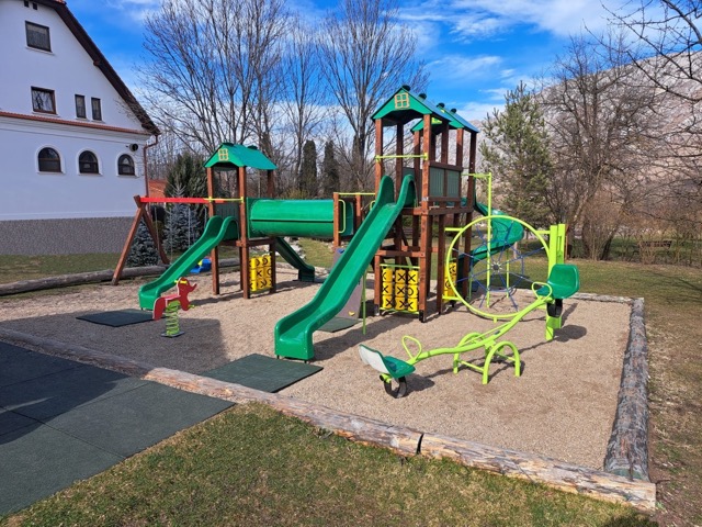 Produsul Complex de Joaca CJ.25N este confectionat din structura de lemn. Acoperit cu bait si lac pe baza de apa, este rezistent la intemperii.