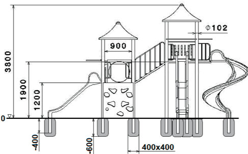 3 tobogane din fibra de sticla PAFS, 1 cataratoare, 2 turnuri, 1platforma, scari acces. |