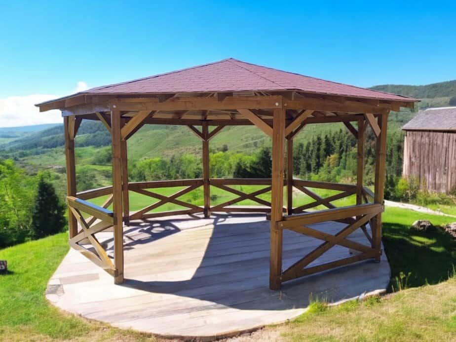 Produsul Foisor octogonal este confectionat din lemn. Tratat cu bait si lac, este rezistent la intemperii.
