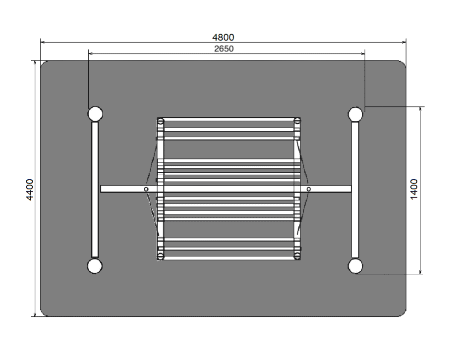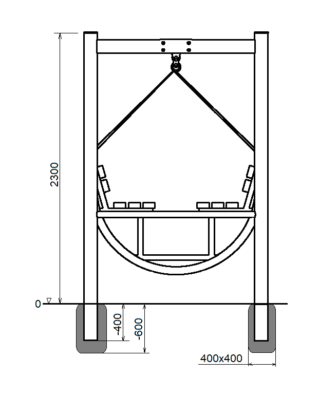 Contine cadru suport metalic, bara transversala, suporti lagare cu rulmenti, rulmenti, lagare rulmenti. Banca si spatarul sunt din rigle de lemn pe un cadru metalic.