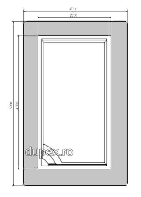 L x I = 4200 x 2300 mm, H = 1300 mm. |