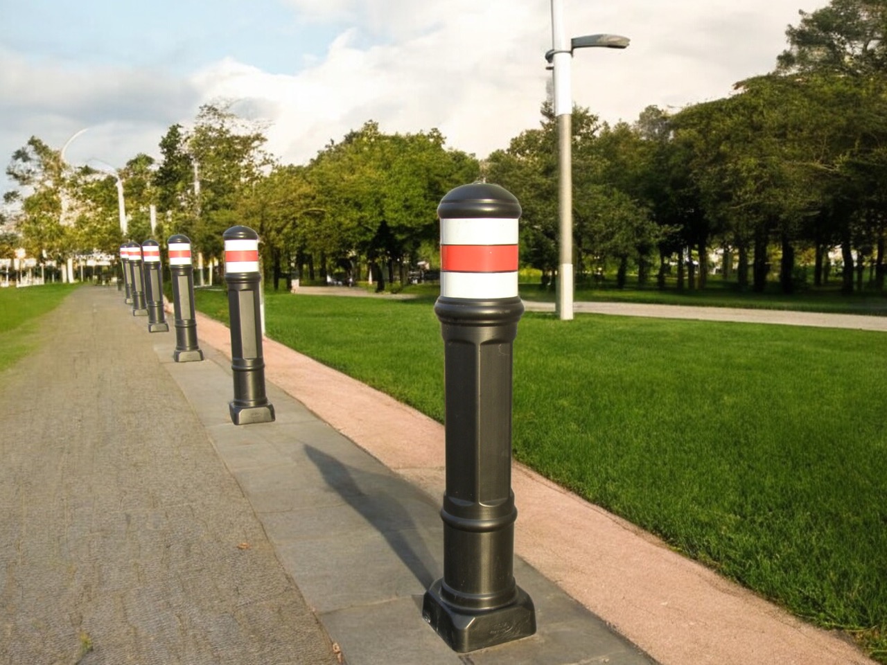 Produsul Stalp pietonal hexagonal cu prindere in beton este confectionat din metal acoperit in plastic. Grunduit si colorat cu vopsele pe apa, este rezistent la intemperii.