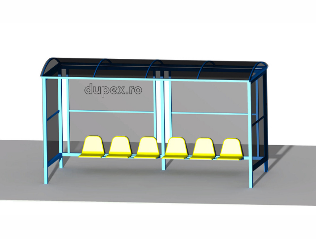Produsul Statie bus 6 scaune – pereti policarbonat SB.06 este confectionat din structura metalica. Peretii sunt din policarbonat, iar scaunele din PAFS (poliesteri armati cu fibra din sticla).