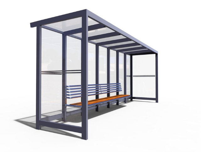 Produsul Statie bus cu banca din WPC – pereti din sticla duplex, acoperis si pereti lateral din sticla si panou info SB.09 este confectionat din structura metalica. Peretii sunt din sticla, iar banca este din WPC.