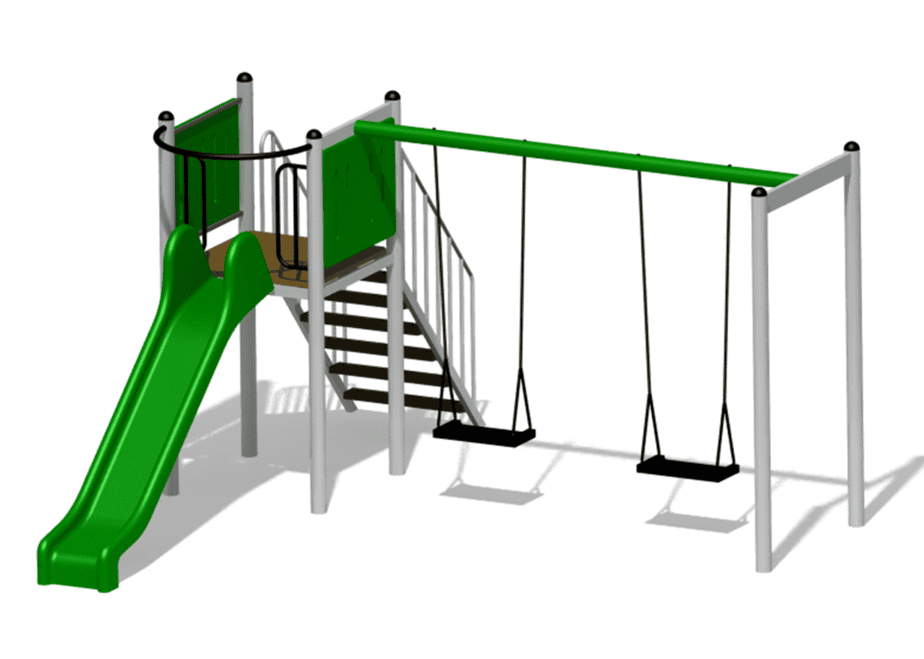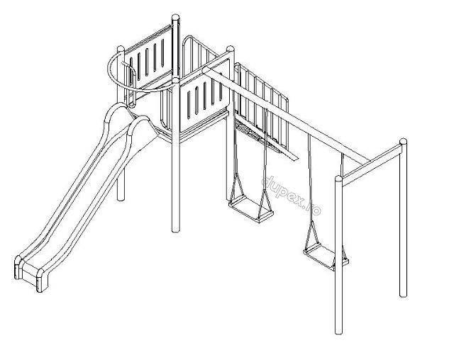 1 tobogan din fibra de sticla, 1 platforma, doua leagane. |