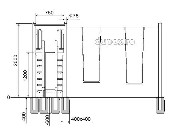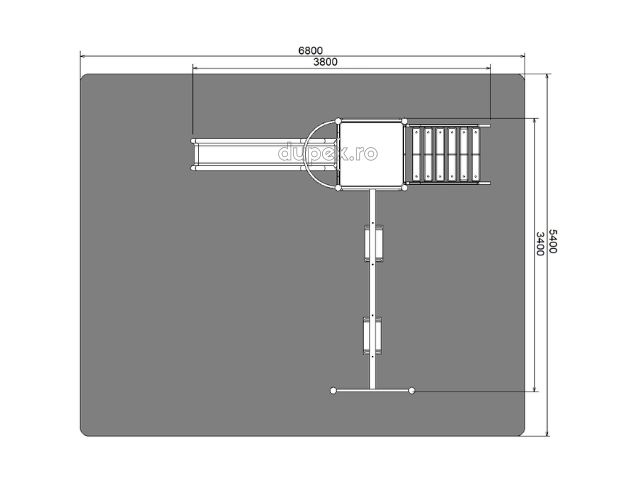 Produsul Tobogan drept 2,5m cu platforma si hinta este confectionat din metal. Grunduit si viu colorat cu vopsele pe apa, este rezistent la intemperii