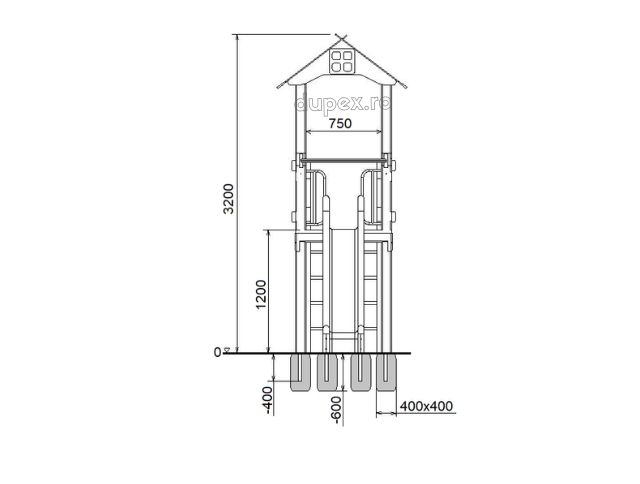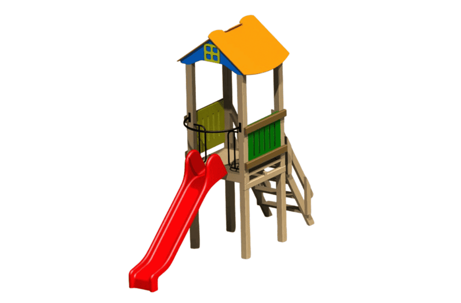 Produsul Tobogan drept 2,5m cu turn lemn este confectionat din lemn. Grunduit si viu colorat cu vopsele pe apa, este rezistent la intemperii.