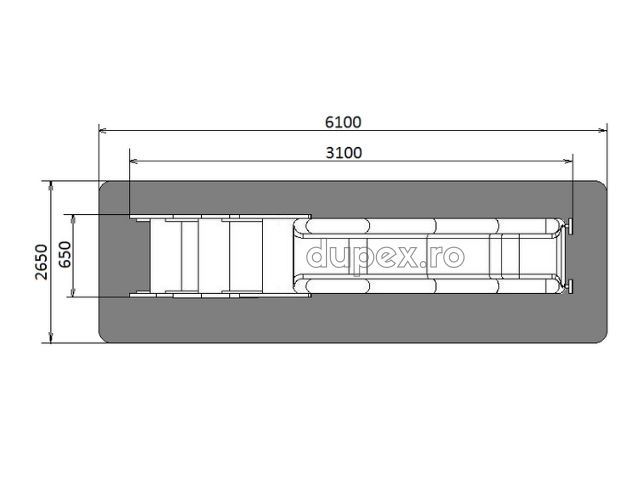 L x I = 3100 x 650 mm, H = 1800 mm. |