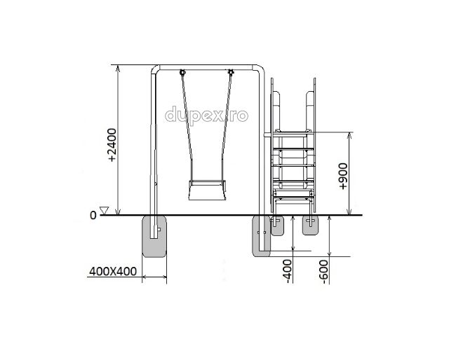 1 tobogane din fibra de sticla, 1 scara, 1 leagan. |