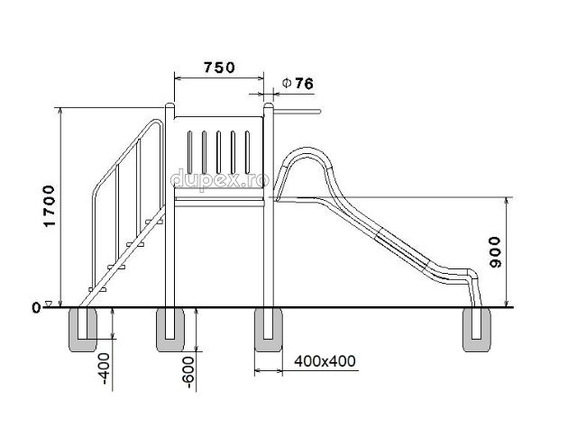 Produsul Tobogan drept 2m cu platforma metal este confectionat din structura metalica tratata anticoroziv cu grund. Cele doua straturi de vopsea aplicata in camp electrostatic confera rezistenta la intemperii.