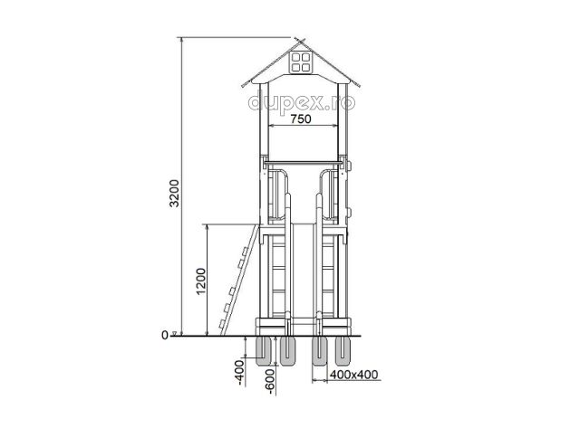 Produsul Tobogan drept 3,5m cu turn lemn este confectionat pe structura din lemn tratat, este rezistent la intemperii.