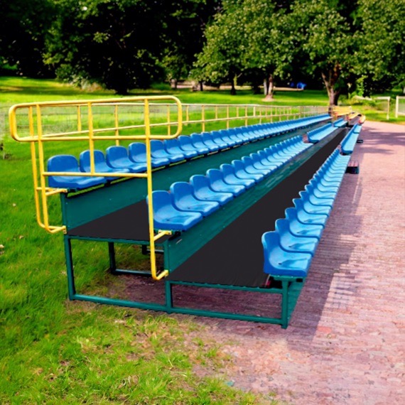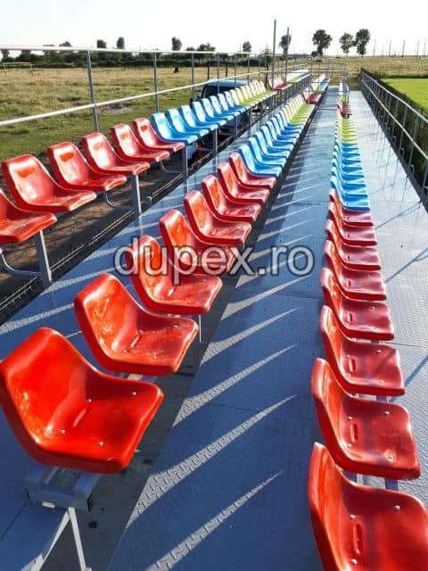 Produsul Tribuna stadion 36 locuri este confectionat pe structura metalica. Grunduit si colorat cu vopsele pe apa, este rezistent la intemperii.